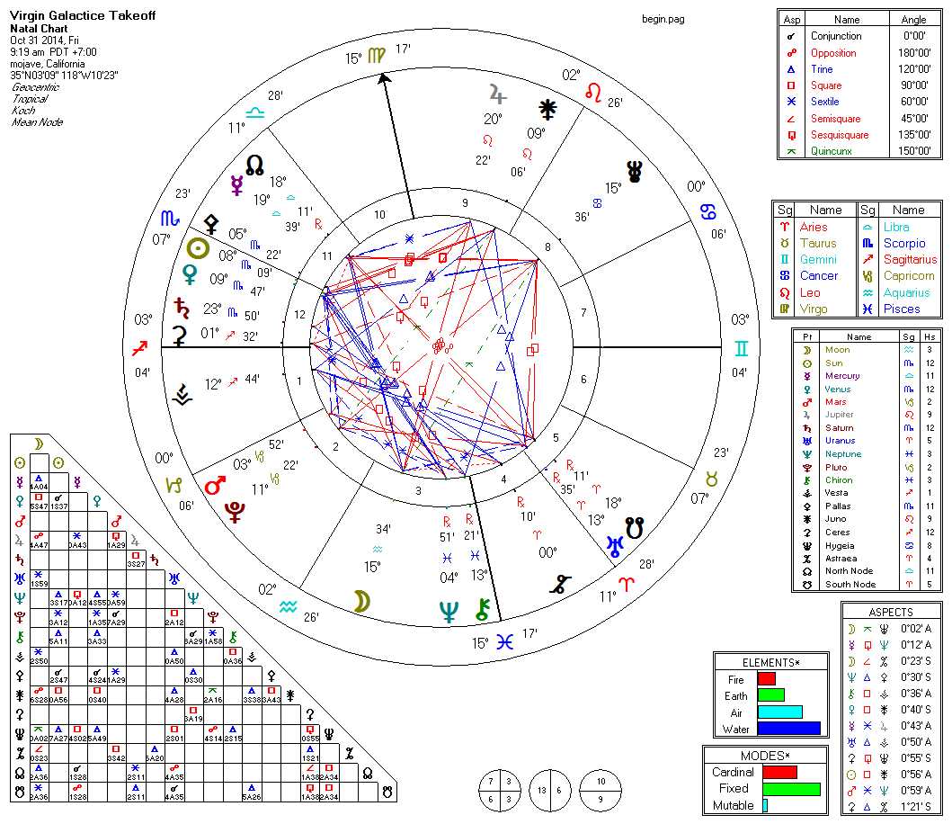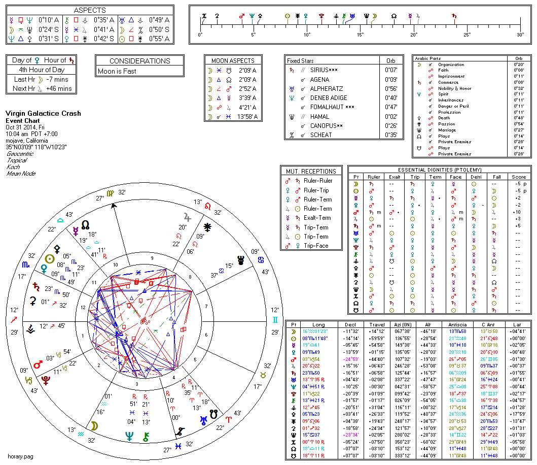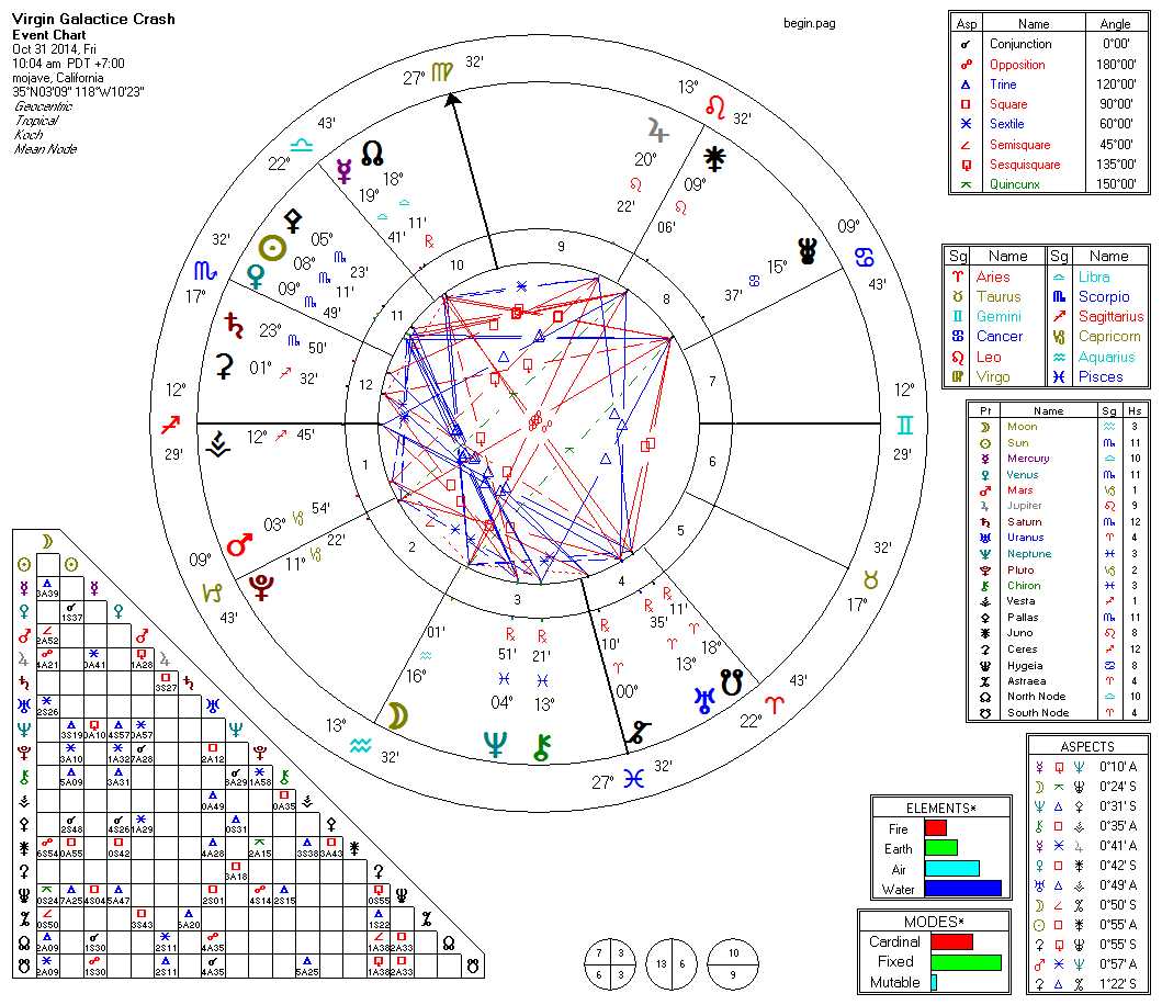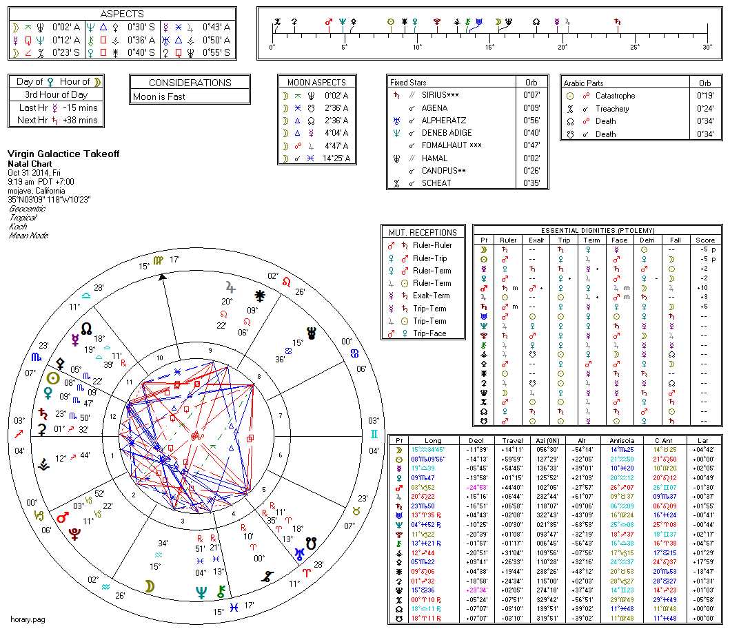 In keeping with our production of charts for catastrophes happening in late October of 2014, here are the charts for the Virgin Galactic crash of Halloween 2014. The crash happened near the Mojave Air and Space Port near Mojave CA.