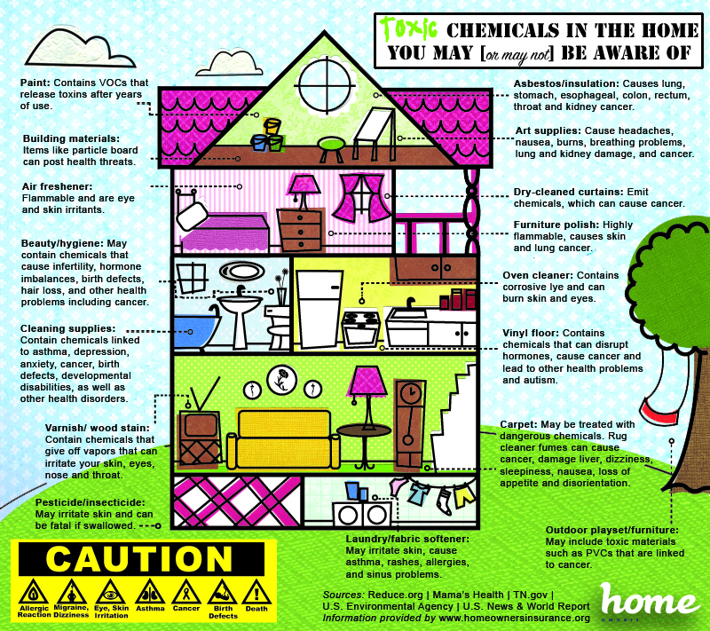 A number of products are likely to contain toxic ingredients: carpet cleaner, room deodorizer, laundry softener, laundry detergent, anti-cling sheets, mold and mildew cleaner, mothballs, and spot remover all usually contain irritant or toxic substances. Examples: