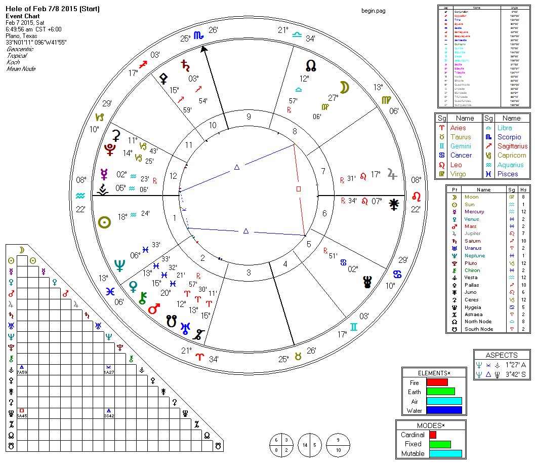 A Hele dominates the sky, continuing to be a polarizing influence, over the course of February 7, 8, & 9. Expect some squabbles during this time, and people becoming intractable in their positions. Here is the chart for the beginning of the Hele: