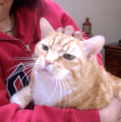 This is our feline friend, Rhubarb, whom I call “Mr. R”. He’s really a very sweet, super cuddly old Ginger Tom with beautiful green eyes. But, Mr. R is feeling quite poorly tonight. He had been losing weight, first around his hind quarters and it seems his shoulders are also thinning. He eventually got a clouded over-right eye that was beginning to spread into the left eye … and then, last night, his hind legs failed him.