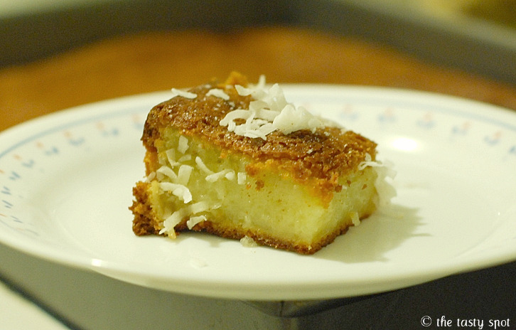 This type of sweet sticky treat comes from a type of Filipino rice cake called Kunkanin … the basic recipe is sweet rice flour (Mochiko flour), coconut milk, a couple of egg yolks, a little water and cane sugar. Butter mochi adds tablespoons of butter to the mix, and you can always top it off with shredded sweet coconut. You can either oil your pans, or roll up your mochi batter like tamales and steam them in banana leaves for yet another yummy variation of this recipe (Suman, sweet sticky rice tamale).