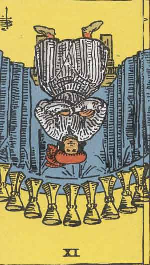 The Nine of Cups reversed is a card that indicates disappointment or smugness. You may be feeling emotionally empty, despite your efforts, or that you can’t be happy until you have what someone else has. It may be that your current path will never bring you the joy you seek and that you need to look for it elsewhere. Alternatively, happiness may be very close at hand but you need to begin noticing all you do have, instead of what you lack. This card could also indicate that you are very happy, but you are using your happiness in ways that hurt others. You may be so self-satisfied that you are not noticing the feelings of those around you. Your bragging and smugness may be very unappealing to those around you. Today, delight in your senses and emotions. Taste the delicious food you eat, feel the comfort of your home, appreciate the amazing gifts of music and art that have been created for our pleasure, feel the amazing love that flows in and out of your heart. What an amazing world! What an amazing thing to be alive! Choose to be happy today; it really is a choice.