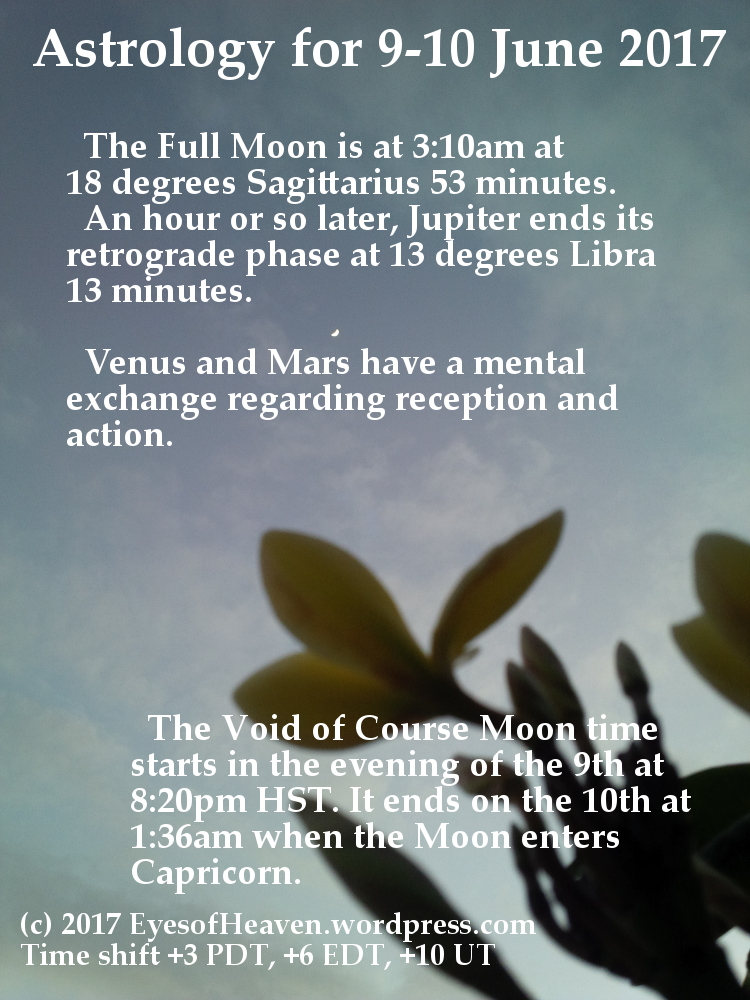 Full Moon and Jupiter direct on the 9th, Venus and Mars dance