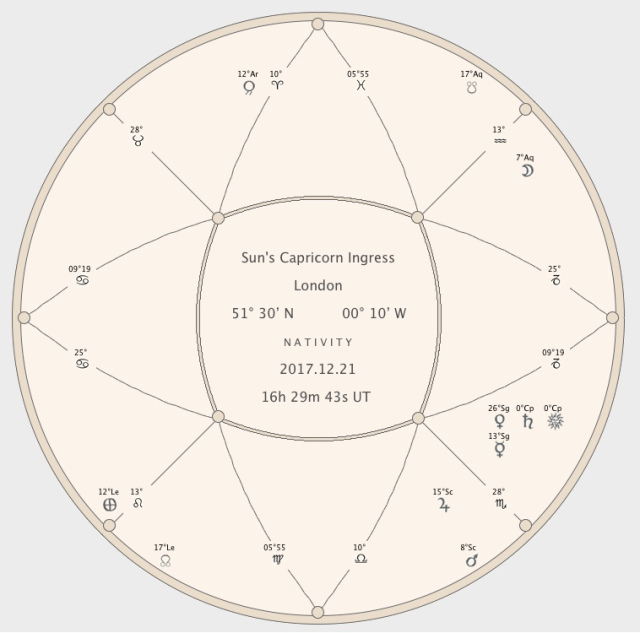 With the Sun’s Capricorn ingress nearly upon us, I would like to take the opportunity to wish all my friends, followers, and gentle readers of this web log a peaceful Winter Solstice and a happy, healthy and prosperous New Year 2018.