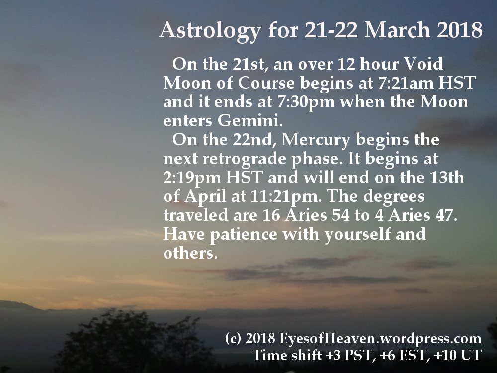 Long Void Moon; Mercury Retrograde begins – double check your work