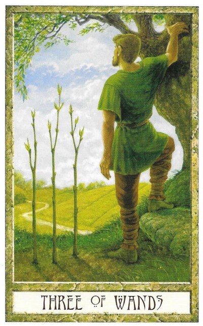 Your future is right in front of you. What should you do next? The 3 of Wands is an indicator of things to come, changes which are on their way toward your life, and turning your back on other things in order to reap the benefits of said changes. Truly, your ship is coming in; it may not be here just yet, but by now you should know that change is possible. This is the time to prepare for it, and to look ahead to see what it is you should be doing between now and its arrival.