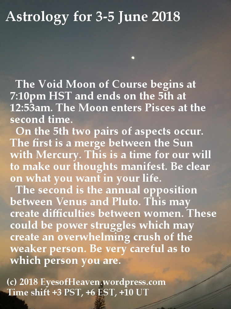 The Venus / Pluto opposition may make fearful people act up / act out due to their lack of personal power. Allow them to pass you by. If they are in your face, make notes about what they are saying. Address it on another day when the energy is not confrontational. Peace to all.
