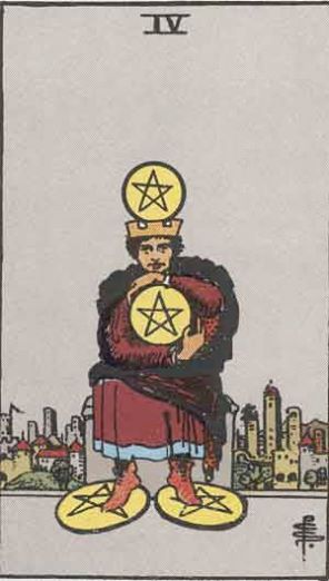 Vast wealth has been accumulated here, and as a result, you have become protective of what you have earned.  Though some amount of conservatism is good for one’s feeling of stability, this card can also warn of stinginess, and having a miserly attitude.