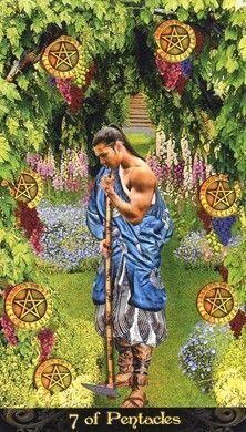 What a great card for a Monday, especially this one! You are right smack dab between the New Moon in Virgo and a Jupiter/Pluto sextile. Something is about to pay off for you in a big way. Today is a good day to focus on something which has perhaps been on your back burner for manifestation; the timing appears to be right now to go for it. Up until now, it seems as though every time we would see the 7 of Pentacles, it would be about the effort and assessment necessary to reach one’s goals. Truly, that never goes away, no matter how much success you amass for yourself.