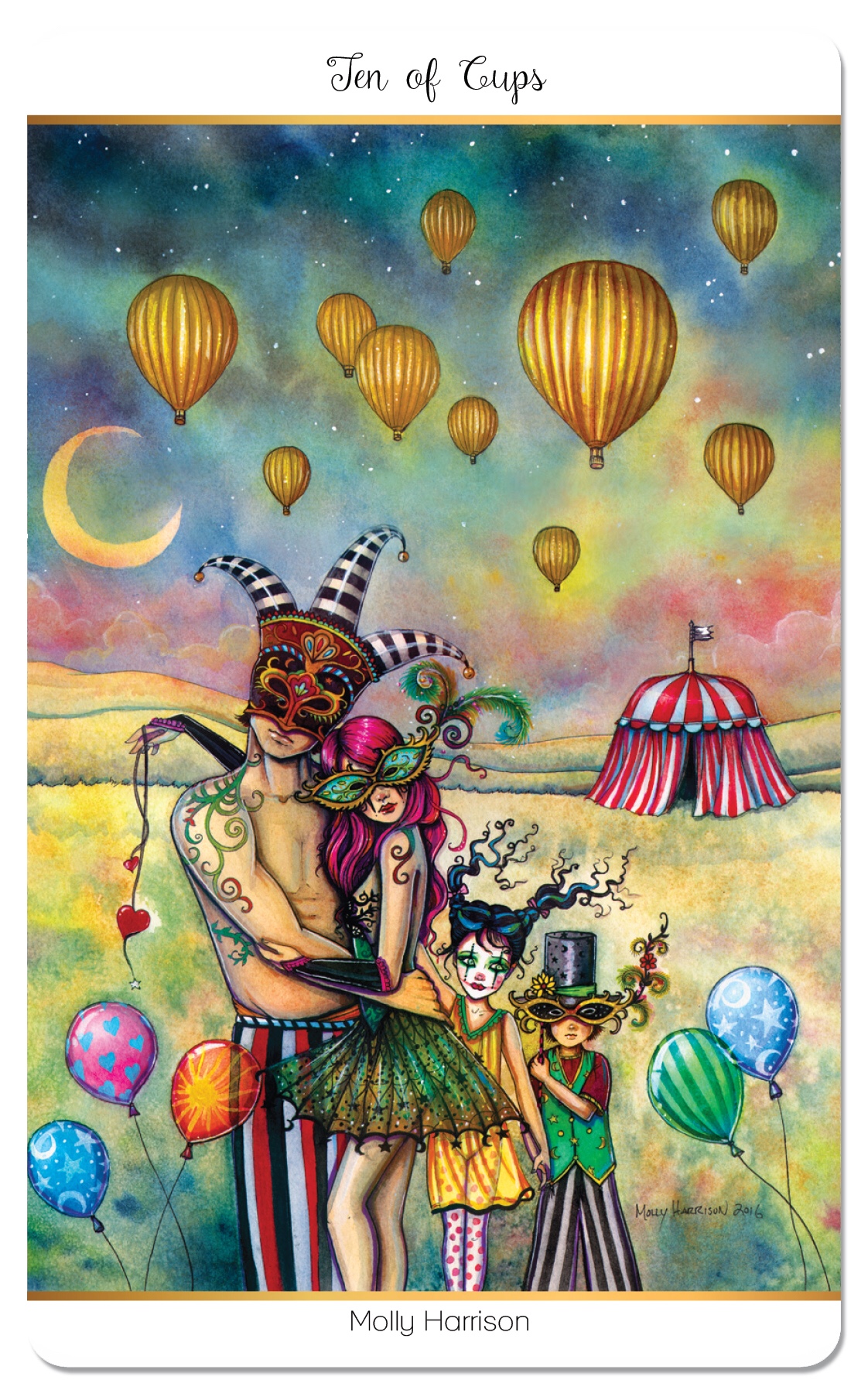 Be it ever so humble, there’s no place like home. This is my all-time favorite Tarot image ever; artist Molly Harrison truly captures the essence of the 10 of Cups, and the pure simple happiness and magic of family which it embodies, in this rendition for 78 Tarot Carnival. Emotional fulfillment is the best of all. This is a timely card, especially for those here in the USA, as today really kicks off the 2018 holiday season. Many of you may be traveling today, so as to reconnect with family, and loved ones, and as the card shows, home is that place where you can all come together in love.