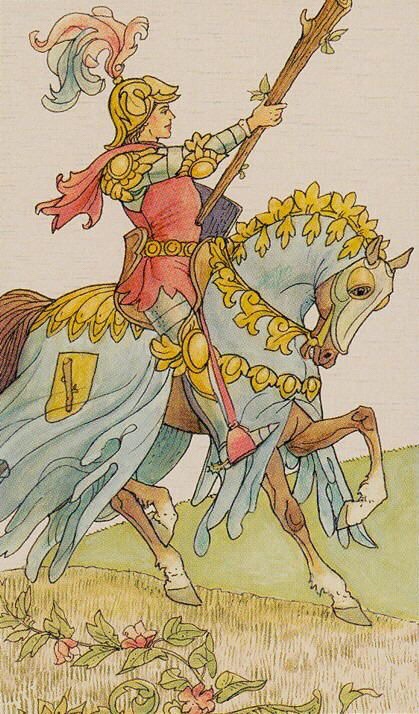 Here he comes, and there he goes! The Knight of Wands has a tendency to be all over the place at times. In an effort to effect his desired changes, he can become brash and cocky, a bit restless, and yes, rather scattered. The caution here for today is especially toward the scattered part; you are still under the influence of the Gemini Full Moon at , and the Moon is still residing there. Gemini energy is generally focused on more than one thing at a time, which can be great for multitasking, but, perhaps not so great, given that Gemini’s ruler, Mercury, is currently retrograde in the sign of its detriment.