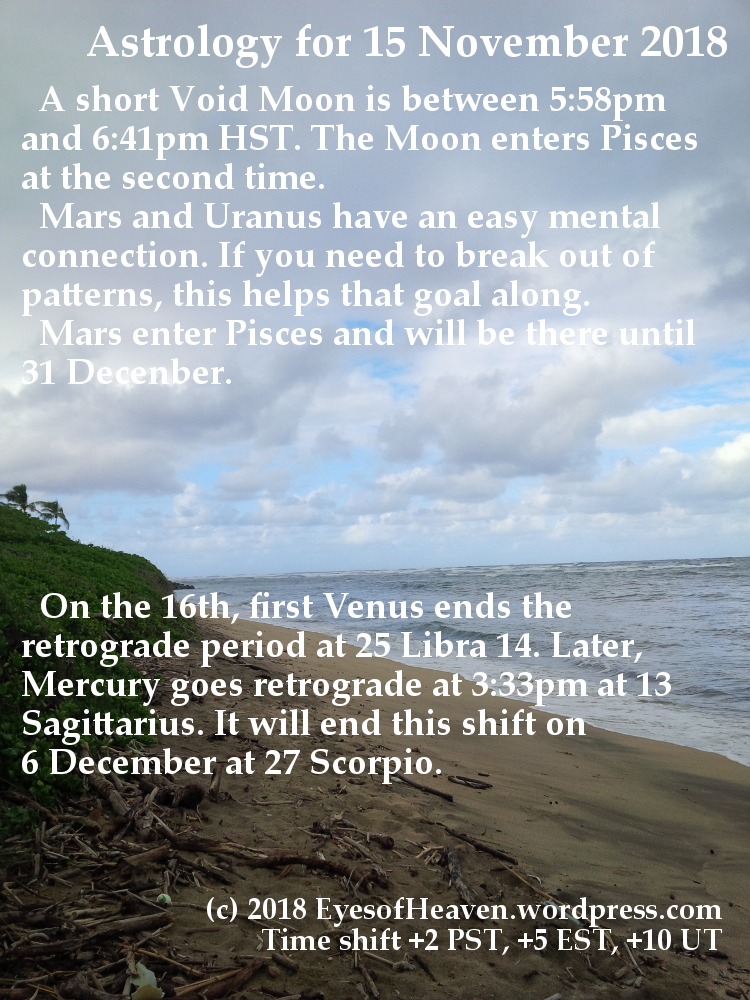Mars enters Pisces see my previous article https://infinitynow.wordpress.com/2018/11/12/planets-changing-lanes-mars-enters-pisces/