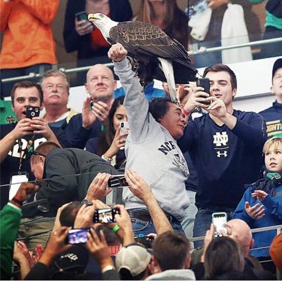 An eagle decided to land at one of the two college football games played today. That eagle managed to find probably one of the only Natives sitting in the stands at the game.