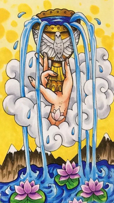Emotions abound today under the Cancer Moon. The Moon is at home here in Cancer’s watery depths, and joins Neptune, Mercury, the Sun, and the North Node, for an emotional influence to your day. The Ace of Cups is representative of emotional fulfillment, love, intuition, creativity, success, and, today, you have the opportunity for emotions to run the gamut. There will be planetary interactions with Mercury and Jupiter, and the Sun with the North Node. There is a positive influence present in your day, bestowing you with determination to succeed in your changes. Be mindful not to take on too much.