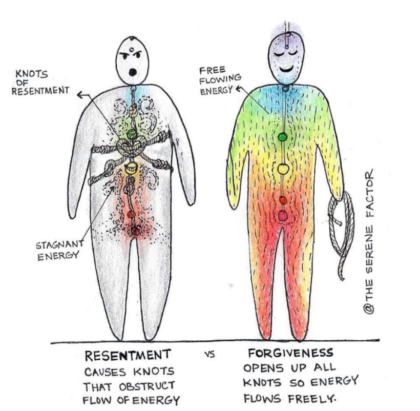 So here is the practice: close your eyes and visualize the person who wronged you or who you wronged. Ask for forgiveness and then forgive them.