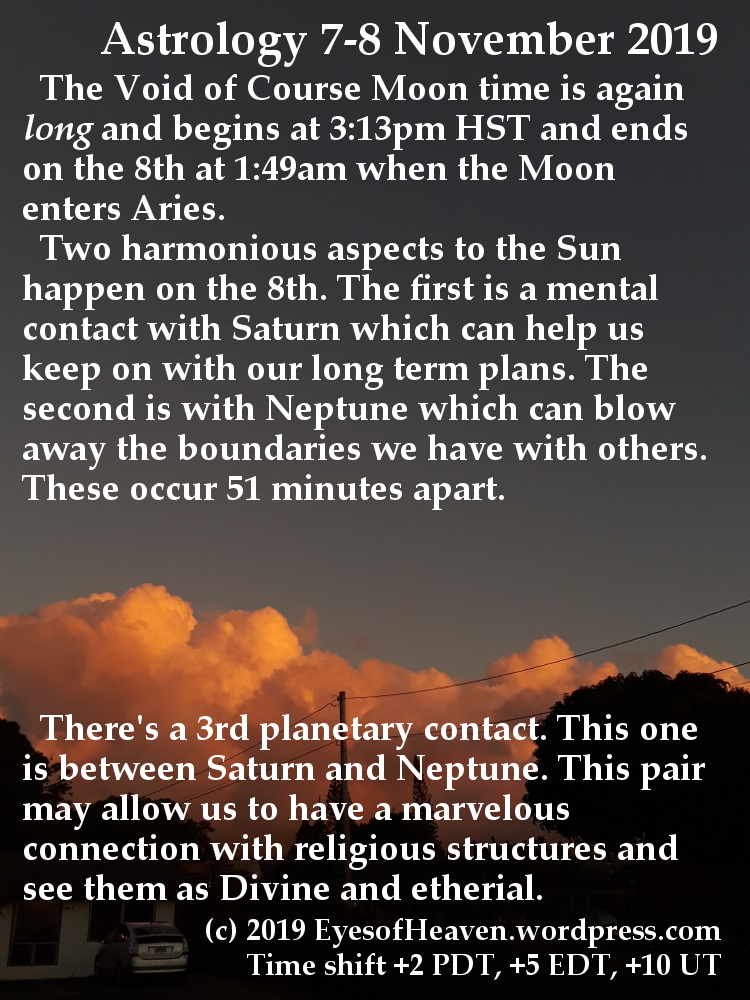 About 10 hour Void Moon time; Nice aspects on the 8th – be aware of boundaries