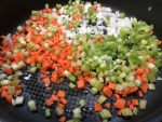 Dice all veggies into small uniform pieces.