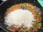Add rice and stir. Allow rice to cook for about 4 minutes, stirring frequently until it begins to brown.