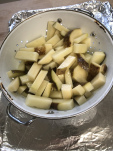 Rinse potatoes in a colander. Shake off excess water. Leaving potatoes in the colander, coat potatoes with oil, tossing to make sure they are completely coated.