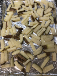 Carefully cut potatoes into fry sizes, being careful to make them all roughly the same size.