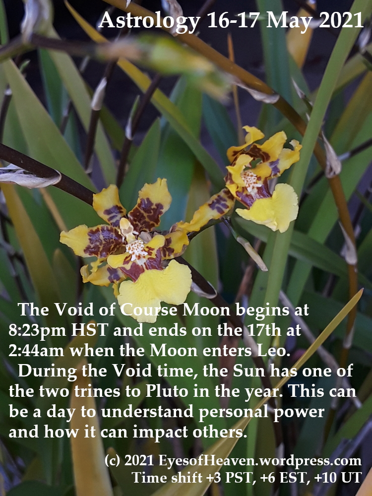Void Moon time bridges the days; Sun trine Pluto on the 17th