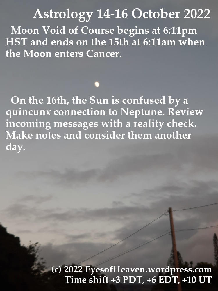 Twelve hour Void Moon time requires us to stay grounded and centered; The Sun and Neptune are sharing intuition and possibly confusion, keep notes