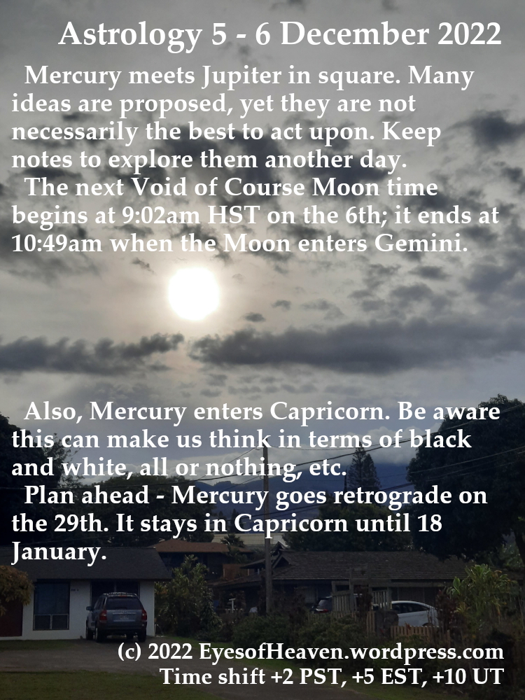 Jupiter infuses us with ideas; Void Moon time; Mercury enters Capricorn – prepare for a retrograde period late in the month