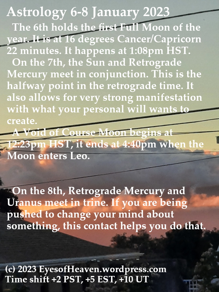 Full Moon is on the 6th; Halfway point of Mercury Retrograde on the 7th; Void Moon during the afternoon; Retrograde Mercury meets Uranus in a harmonious trine