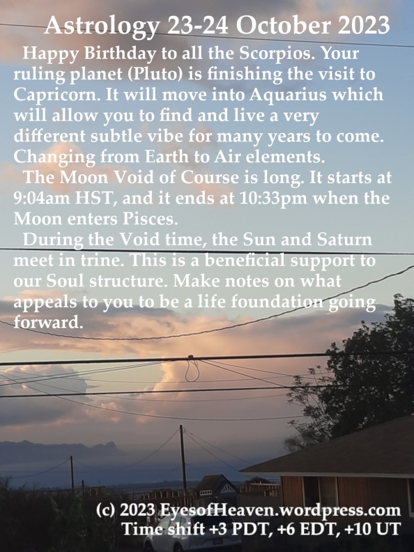 Astrology | Scorpio Sun arrives; Void Moon time arrives and it is long, so complete projects which may be long overdue for being done – stay grounded; A Sun Saturn connection allows for a life review and course correction, if need be