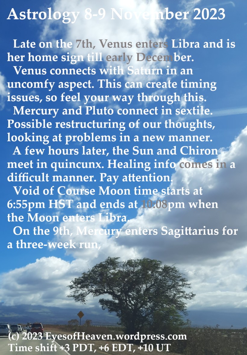 Venus enters Libra on the 7th and immediately meets up with Saturn; Mercury and Pluto have a mental exchange of revolutionary ideas; The Sun and Chiron are not easily connecting;