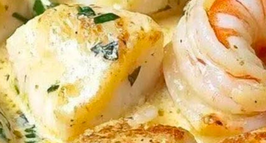 Get the recipe here: Cod and Shrimp in Creamy Garlic Sauce