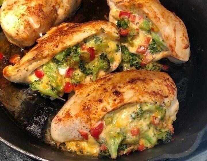 – Divide the broccoli mixture among the chicken breasts, pressing it firmly into each pocket.