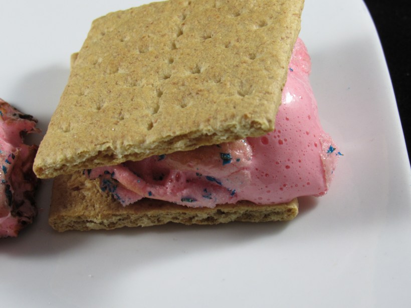 All you need for this recipe are the usual ingredients – graham cracker, chocolate, marshmallow (in this case Cotton Candy flavored Peeps) and a fire!