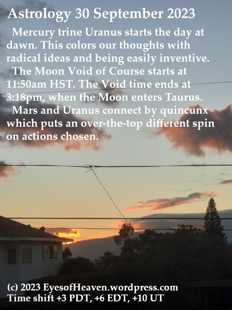 September 29 Full Moon at 6 degrees 00 ARIES at 2:58 am PDT/ 5:58 am EDT is a Cardinal sign. the first fire sign of the Zodiac ruled by MARS, now in LIBRA at 21 degrees. Self and others and releasi […]