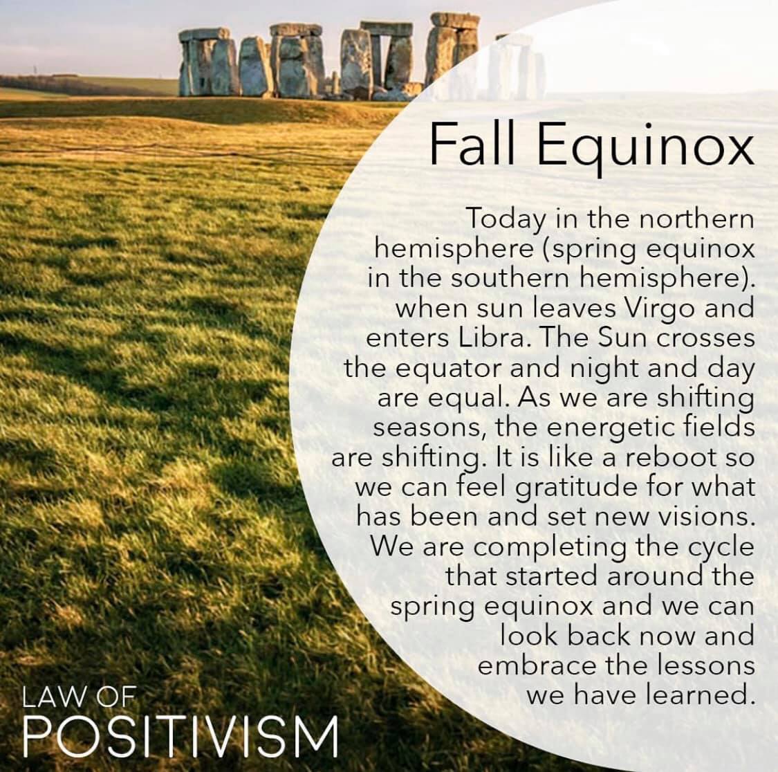 Equinox means equal day and night and it falls on Sept 23 @ 12:50 am PDT /3:50 am. pm EDT/ Sept. 23 @ 7:50 am GMT. The Masculine and Feminine powers are balanced. This is an excellent time to bring our own inner masc. and fem. together as equals.