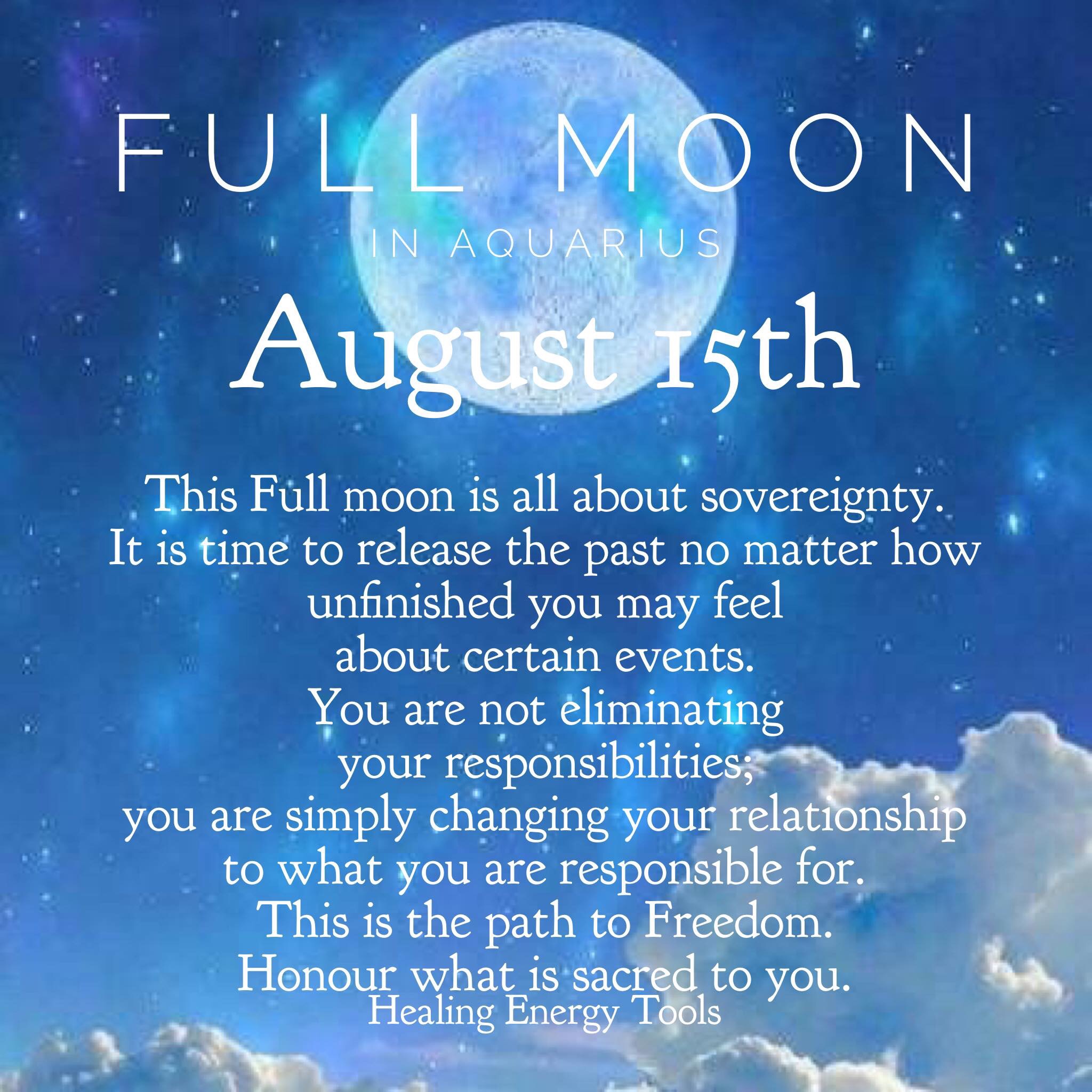 August 15 2019 is a full Moon in Aquarius. Air sign Aquarius rules the 11th house of ideas, inspiration, and ideals, plus friends, groups, and the larger collective of all humanity. This full Moon, and as the lunar cycle wanes, is a good time for networking, sharing concepts, and making connections that expand your circle. Team work leads to success, and think tanks bring interesting results.