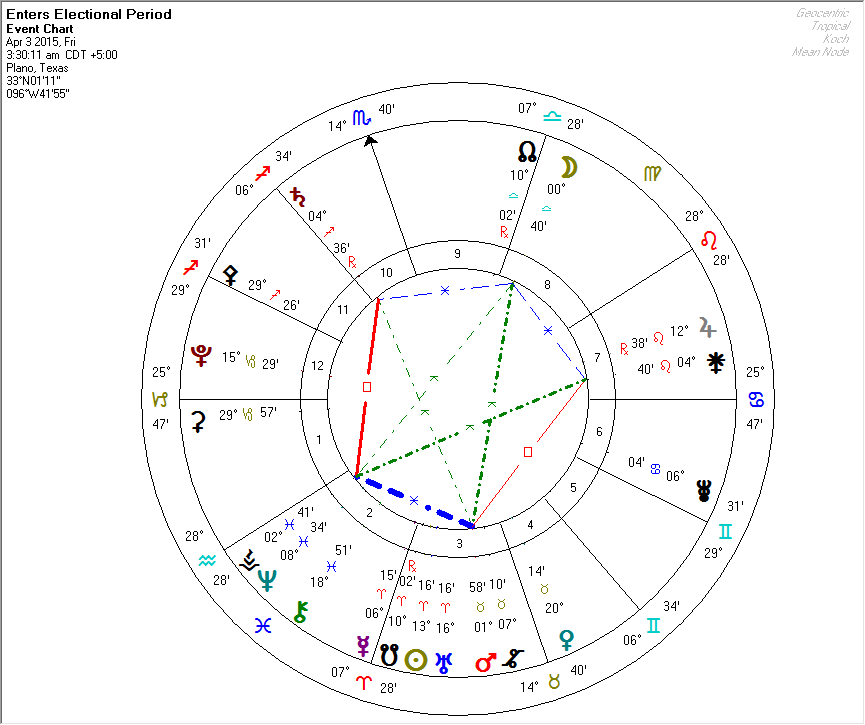 We note that a variant of this Focused Yod shows again during the Lunar Eclipse (Full Moon of April 2015). You may also want to compare this period of your life with the period surrounding the Stretched Pentagram of January 2013.
