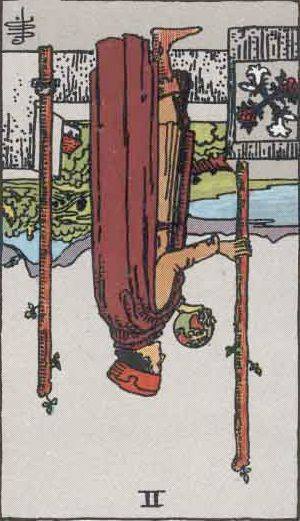 The Five of Wands Reversed may come up when a disagreement is finally resolved. You may be ready to admit you were wrong, or apologize to someone, or someone may apologize to you. However, beware of smoothing over a situation to avoid conflict, as the issue may come up again and again until you confront it. This card may also come up when you back down too quickly when faced with opposition. Remember that challenging situations often have the most rewarding outcomes. If you are finding a relationship dull, this card could indicate a need for increased competitiveness. Play sports or board games together. This card may also indicate inner conflict, like wanting to do two things that cannot both be done together. Just for today, chances are you’re feeling feisty. Today, you may get involved in a heated debate, or have a craving for some fun competition. The warning is to not get too attached to winning — keep it light, have fun. New ideas and strengthened friendships are possible.