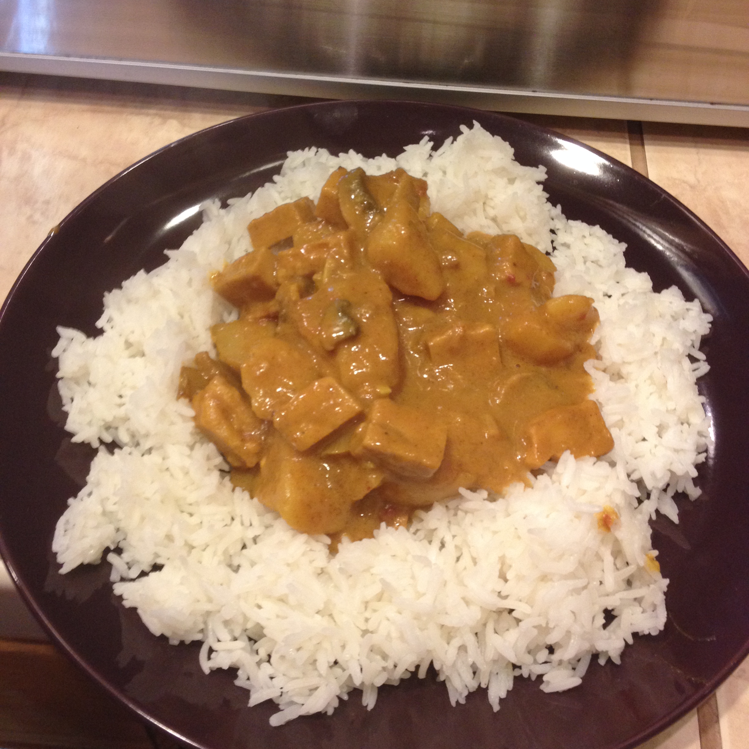 Last step is to pan fry the shrimp until light orange in color and drain out any fluid that came out of the shrimp and add it straight into the curry. Simmer together for another 5-8 minutes before serving over hot rice.