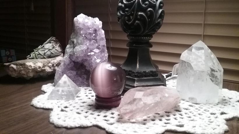crystal, white candle,